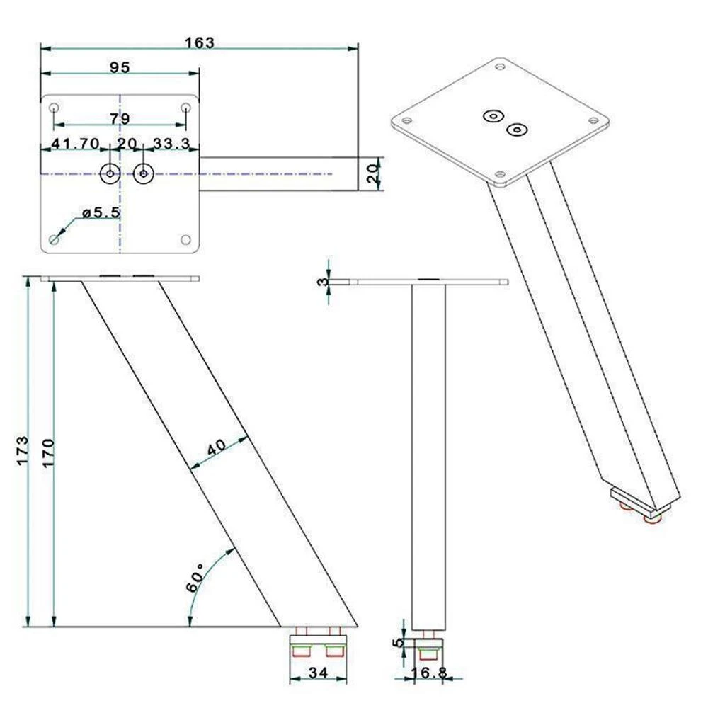 mit 4 Bohrungen Durchmesser 5,5 mm - 2 Schrauben M6 x 50 mm (SW10) plus Unterlegscheiben zur Befestigung