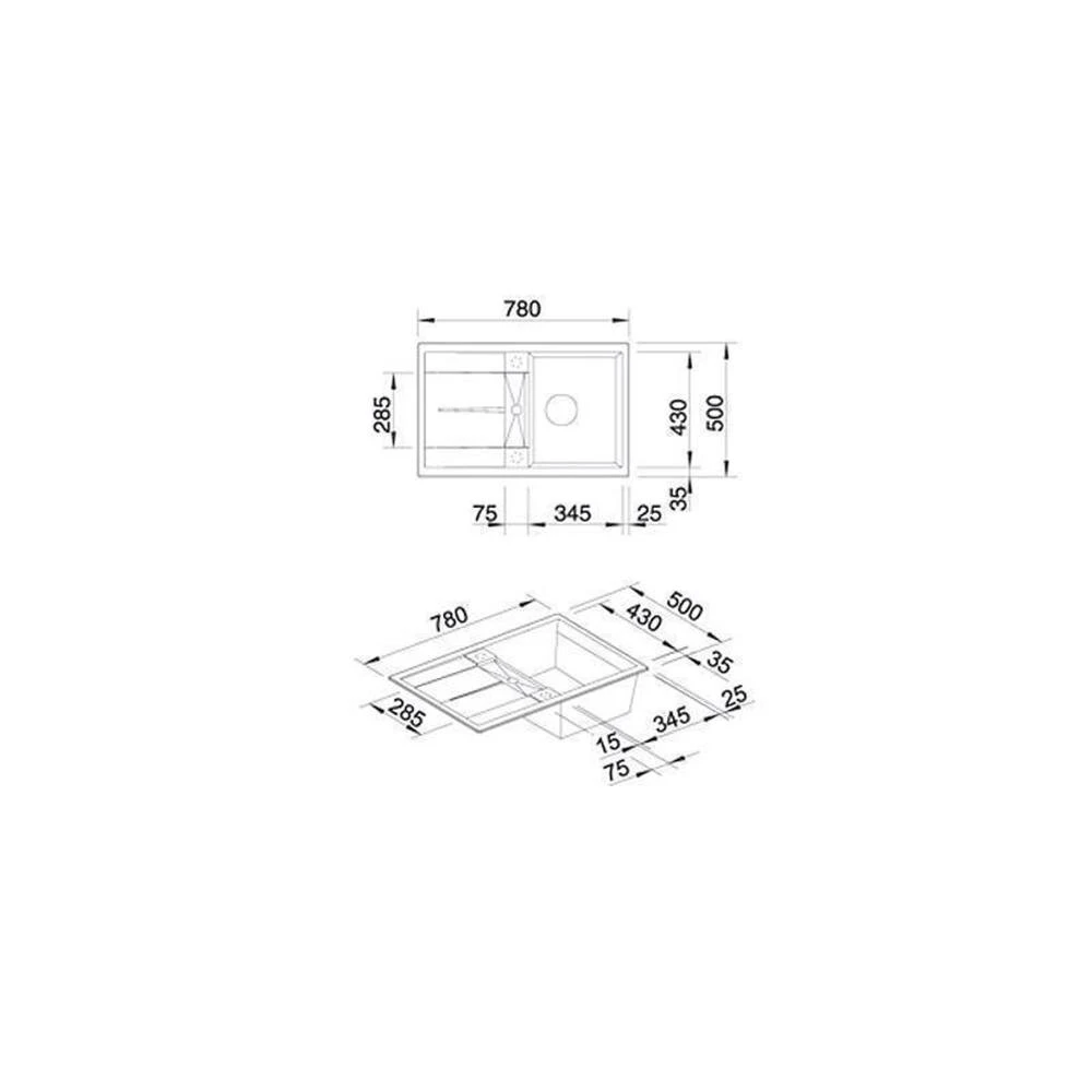 - Beckengröße: 345 x 430 x 190 mm / 75 x 285 x 15 mm