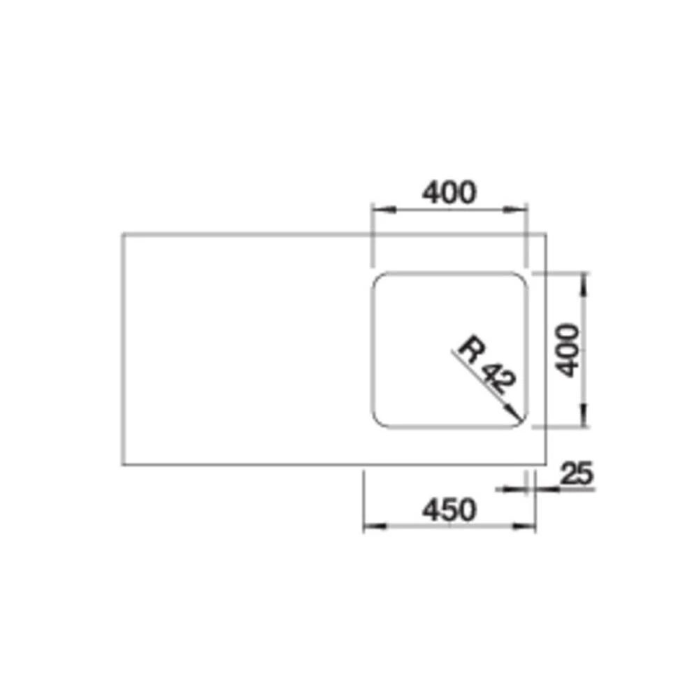 - Ausschnittmaße: 400 x 400 mm, Ecken R=42 mm