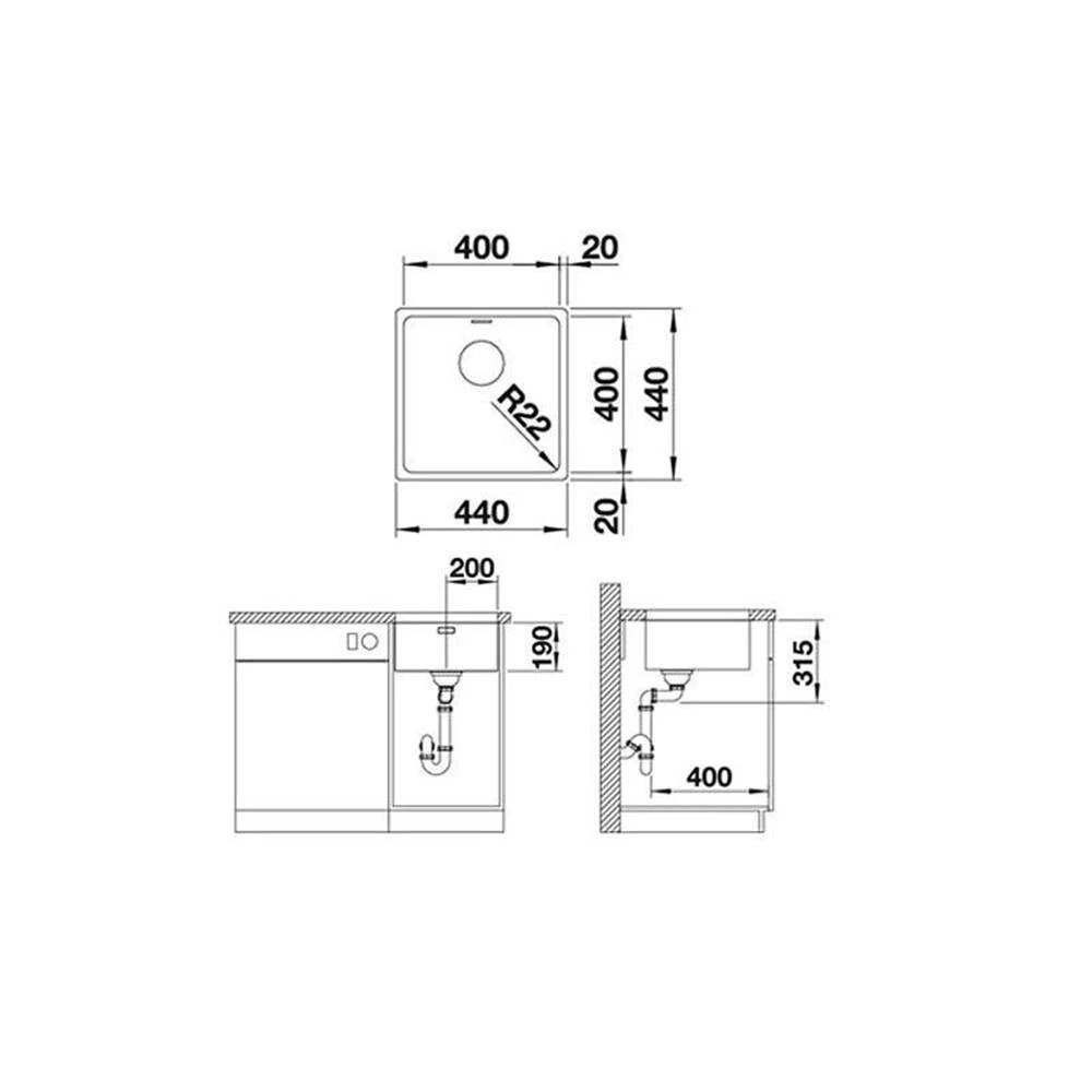 - Maße: B 440 x T 440 mm
