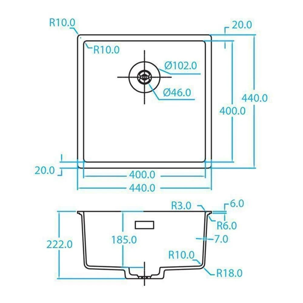 Caressi Einbauspüle CAGR40BW-FL Black und White Line 44 x 44 cm