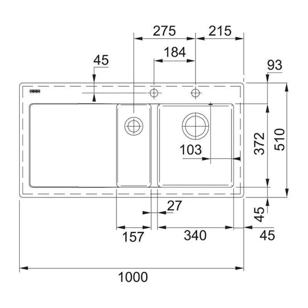 - Spülenmaß: B 1000 x T 510 mm