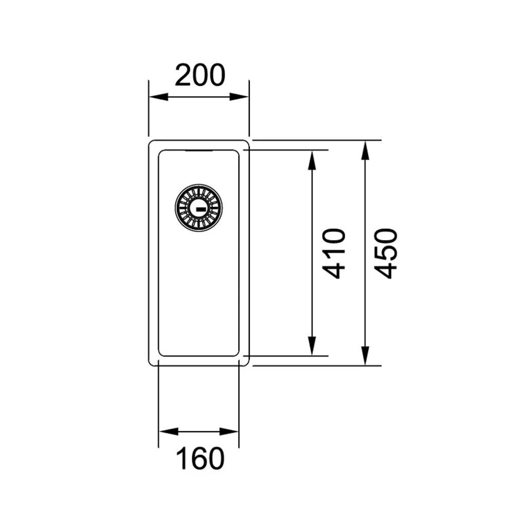 - Spülenmaß: B 200 x T 450 mm