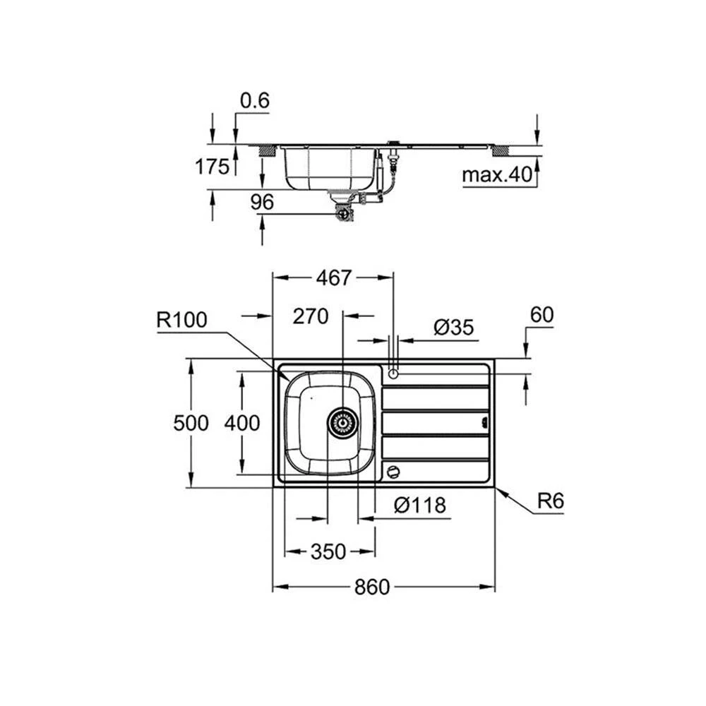 Grohe Einbauspüle K200 45-S 86/50 1.0 rev, Edelstahl