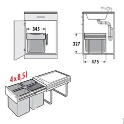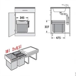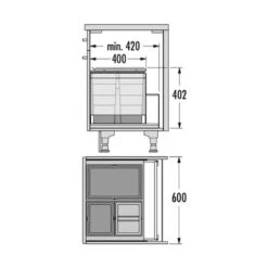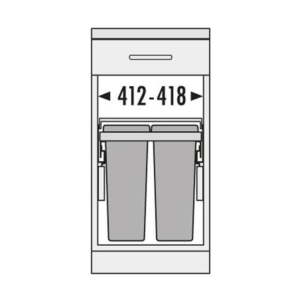 Einbau-Abfallsammler zum Einbau in 45 cm breiten Unterschrank/Spülenschrank hinter Auszugfront (Seitenwandmontage)