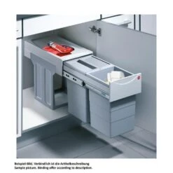 - Abfalleimer: 1 x 30 l plus 1 x 19 l hellgrau, Gesamt-Inhalt 49 l