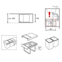 - Anzahl Behälter: 2 Abfallbehälter, 1 x Putzmittelkorb 4,1 L, 1 x Utensiliendepot
