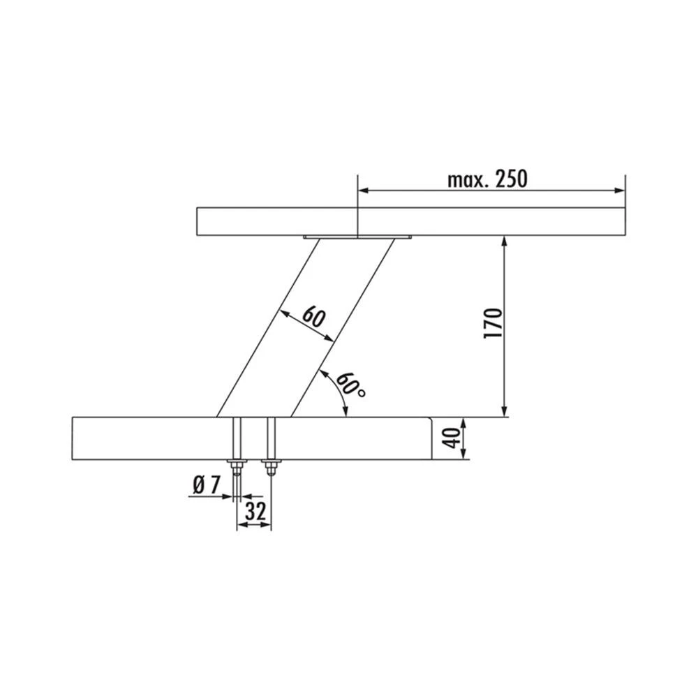 - max. Tragekraft pro Paar von ca. 60 kg bei gleichmäßig verteilter Last, bei einem max. Abstand der Konsolen von 900 mm und einem max. Überstand der Platten von 250 mm