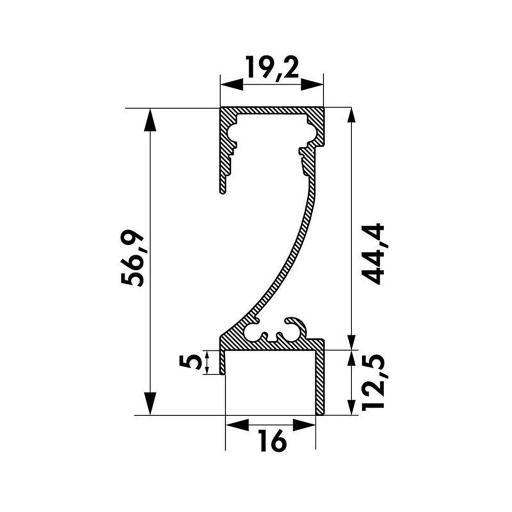 Zum Aufsatz auf Nischenwand-Verkleidungen von Küchen-Nische. Schaffen Sie interessante, wechselnde Lichtstimmungen in der Küche, indem Sie auf halbhohen, 16 mm starken Nischenwand-Verkleidungen dieses Profil aufsetzen und damit die Arbeitsplatte ausleuchten: kaltweißes oder neutralweißes Licht zum Arbeiten, warmweißes Licht als abendliches Stimmungslicht.