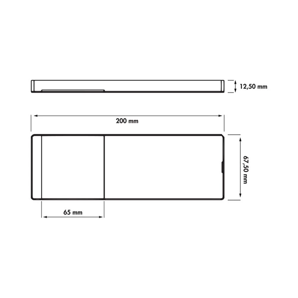 - Maße Leuchtenkörper (LxBxH): 200 x 67,5 x 12,5 mm