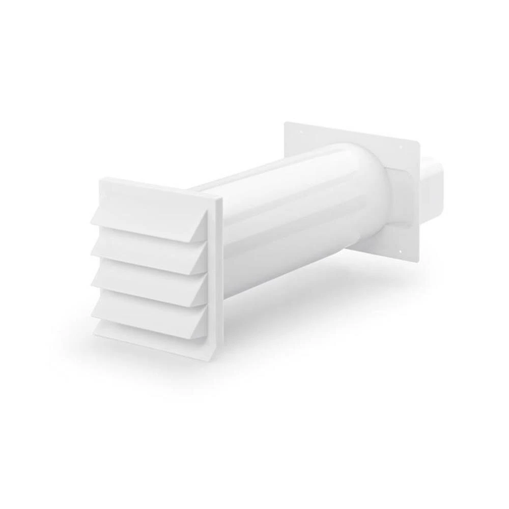 - Wand-innenseitig: Rechteck-Anschluss, mit Rohrstutzen 227 x 94 mm (Außenmaß), Stutzentiefe 80 mm