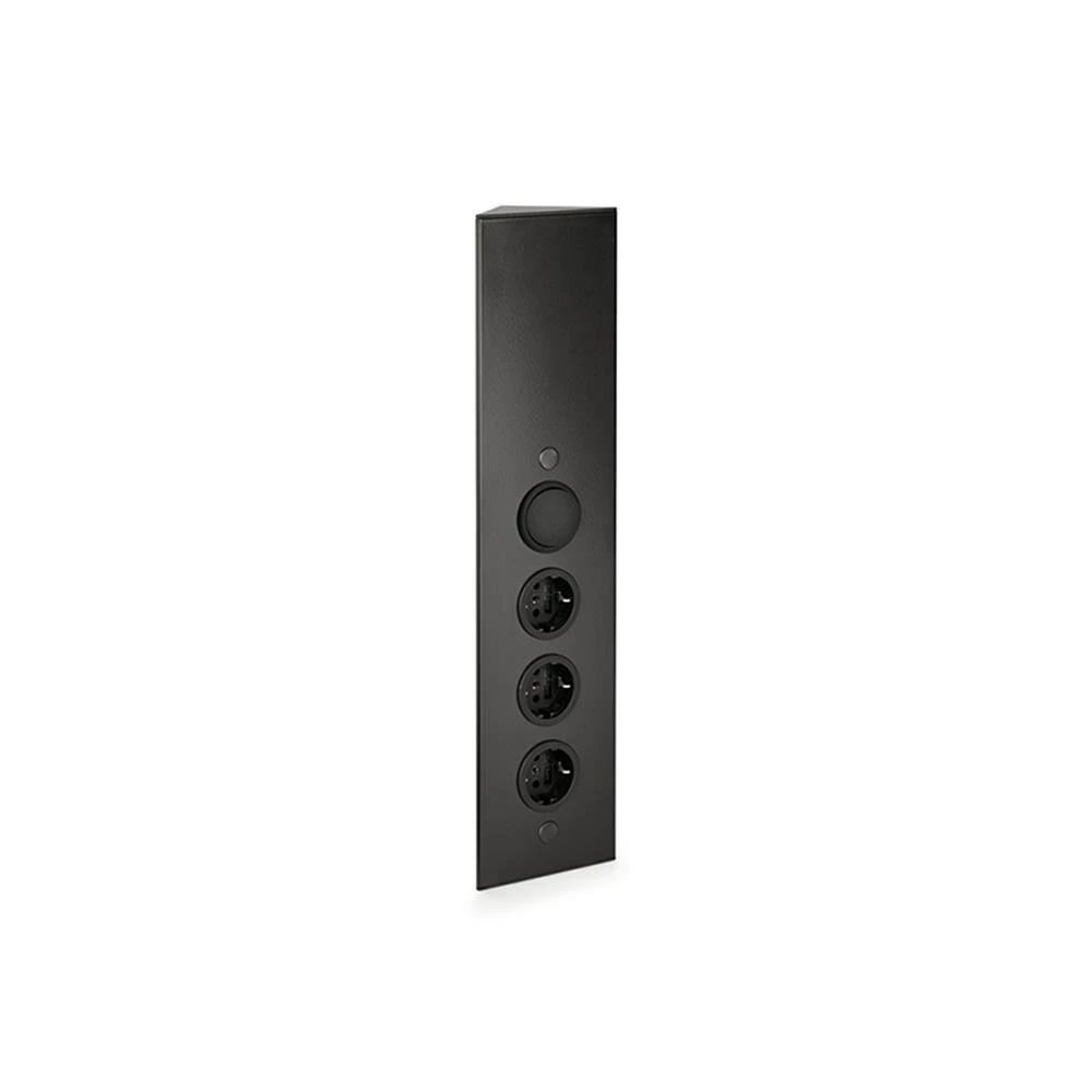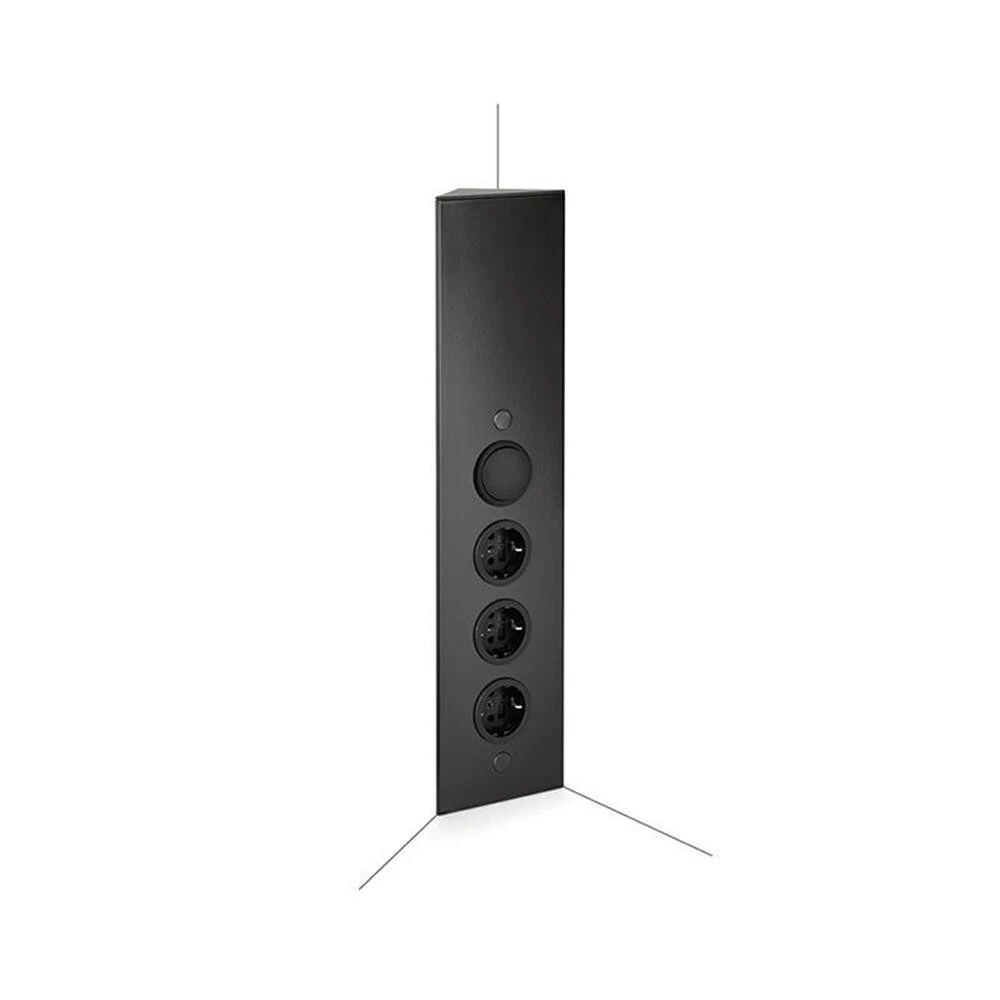 Eck-Steckdosenelement. 3-fach. Mit teleskopierbarem Ausgleichsstück ohne Endkappen, mit Schalter schwarz für externe Beleuchtung.