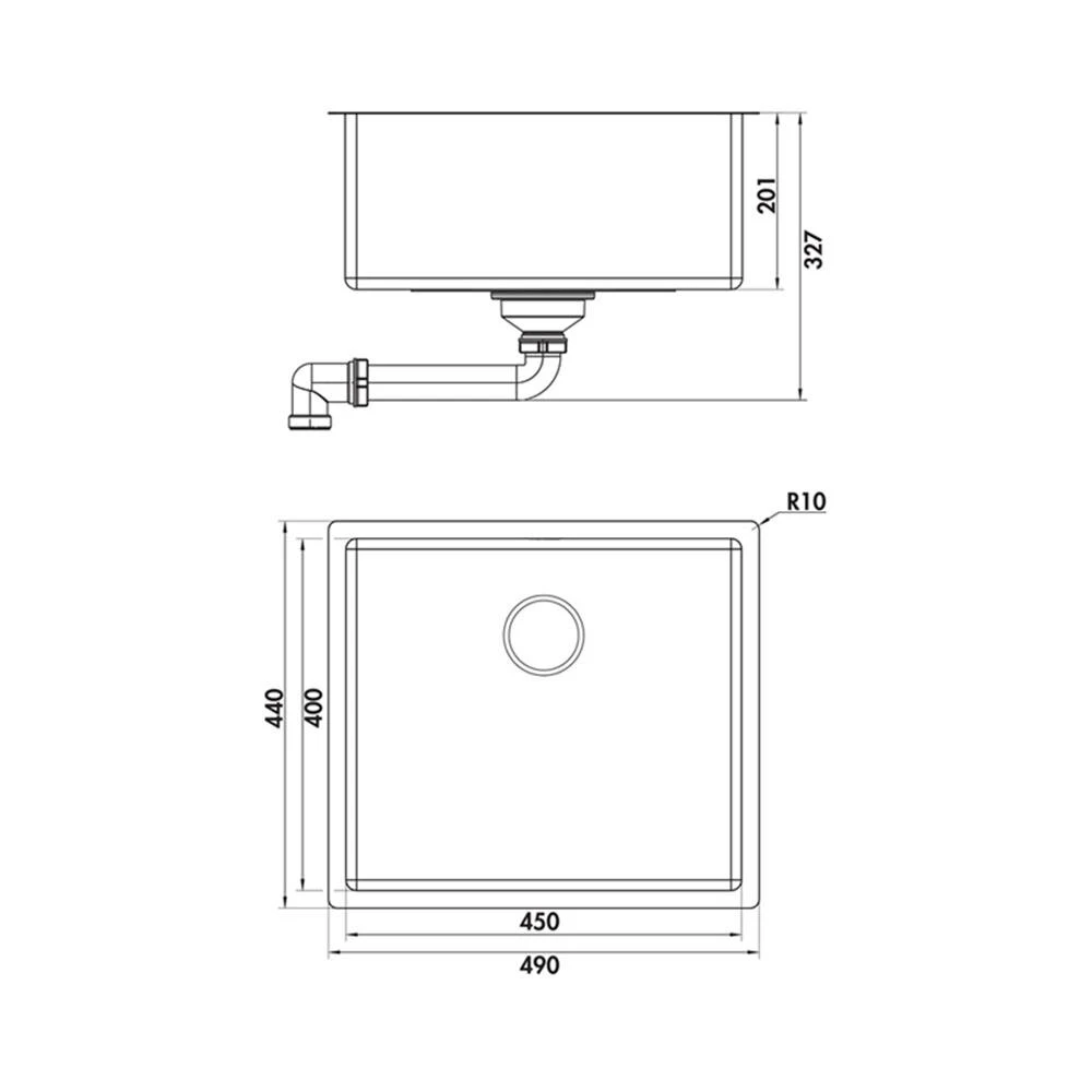 - geeignet für Arbeitsplattenstärken von 10–40 mm (Einbauspüle) bzw. ab 20 mm (Unterbauspüle)