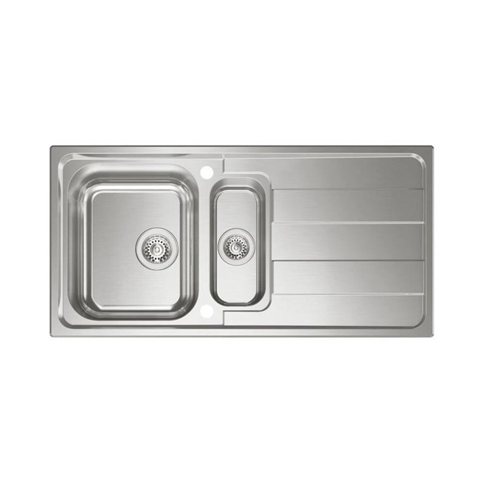 - Edelstahlspüle (glatte Oberfläche) mit Abtropffläche plus Restebecken