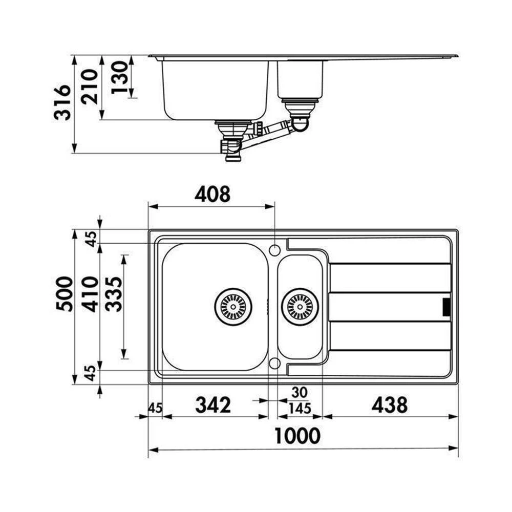 - Spülenmaß: B 1000 x T 500 mm