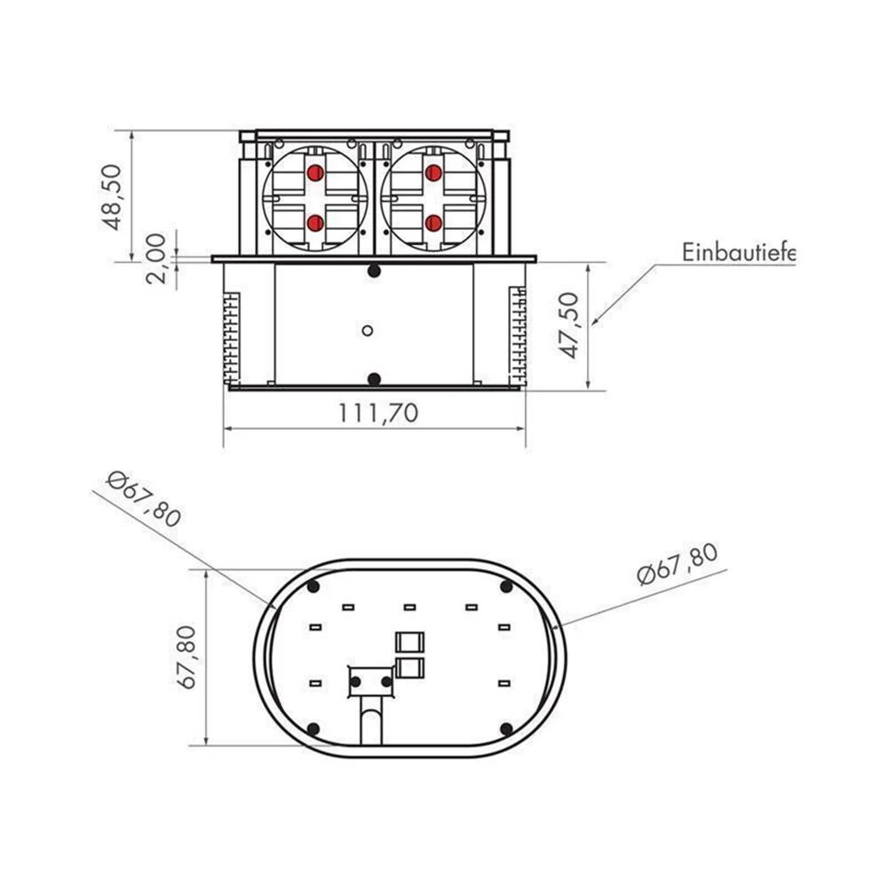 - Steckdosenelement. Versenkbar. Mit 2 Schukosteckdosen für Hängeschränke oder Arbeitsplatten.