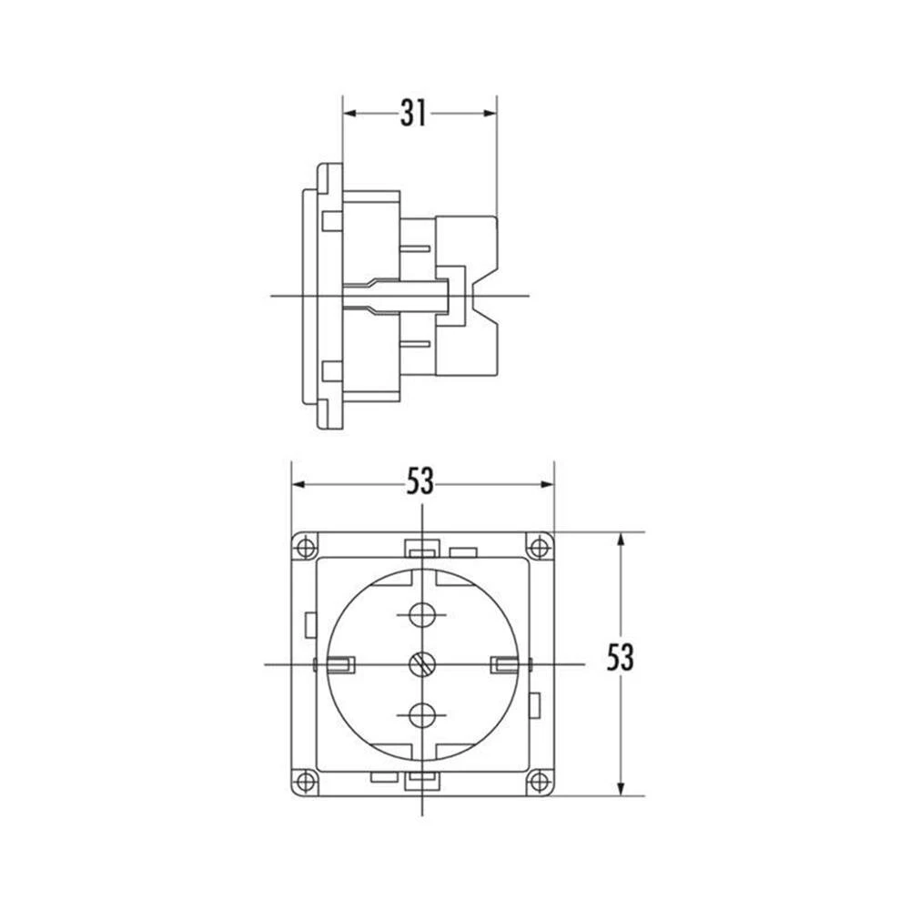 Schukosteckdose mit Klappdeckel, silberfarbig/schwarz