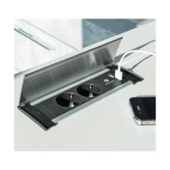 Naber Kapsa USB A, Steckdosenelement, Mit Schweizer Steckdosen, Deckel Edelstahlfarbig