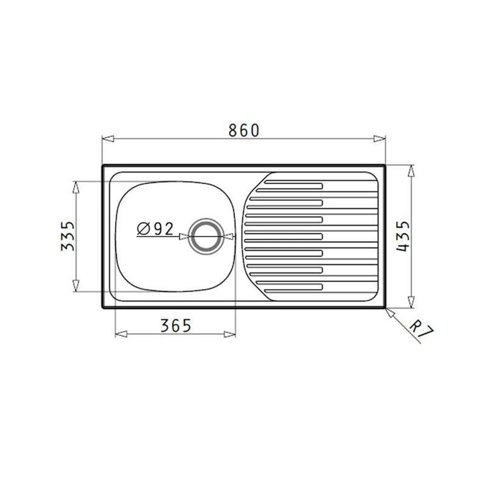- Spülenmaß: B 860 x T 435 mm