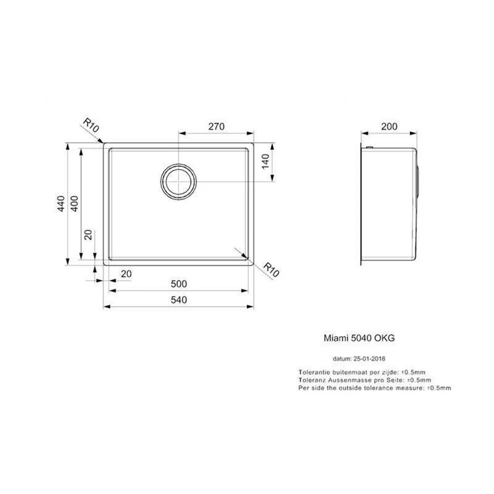 - Spülenmaß: 540 x 440 mm