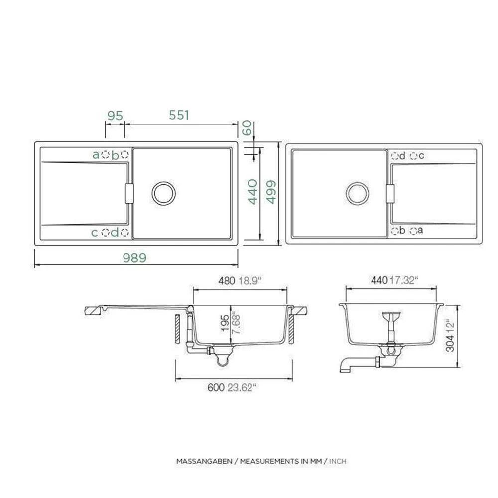 - Ausschnitt Flächenbündig: 991 x 501 mm