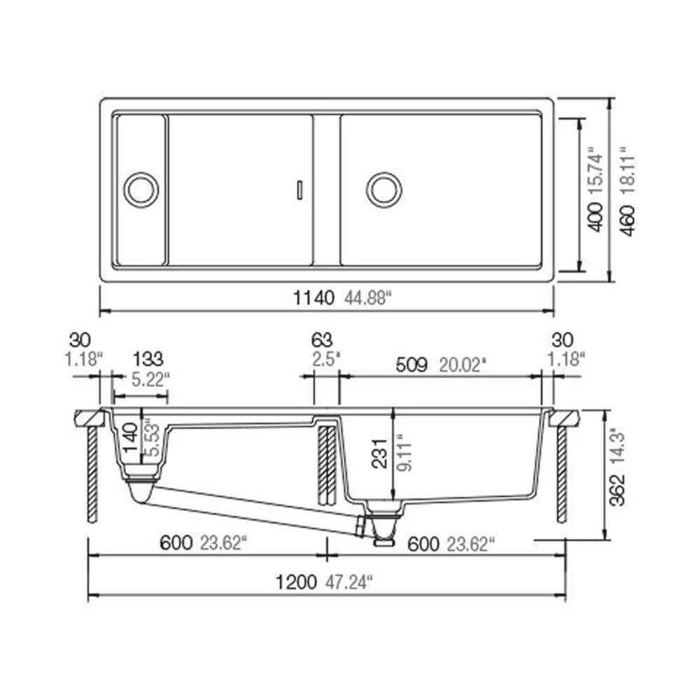 - Außenmaße: B 1140 x T 460 mm