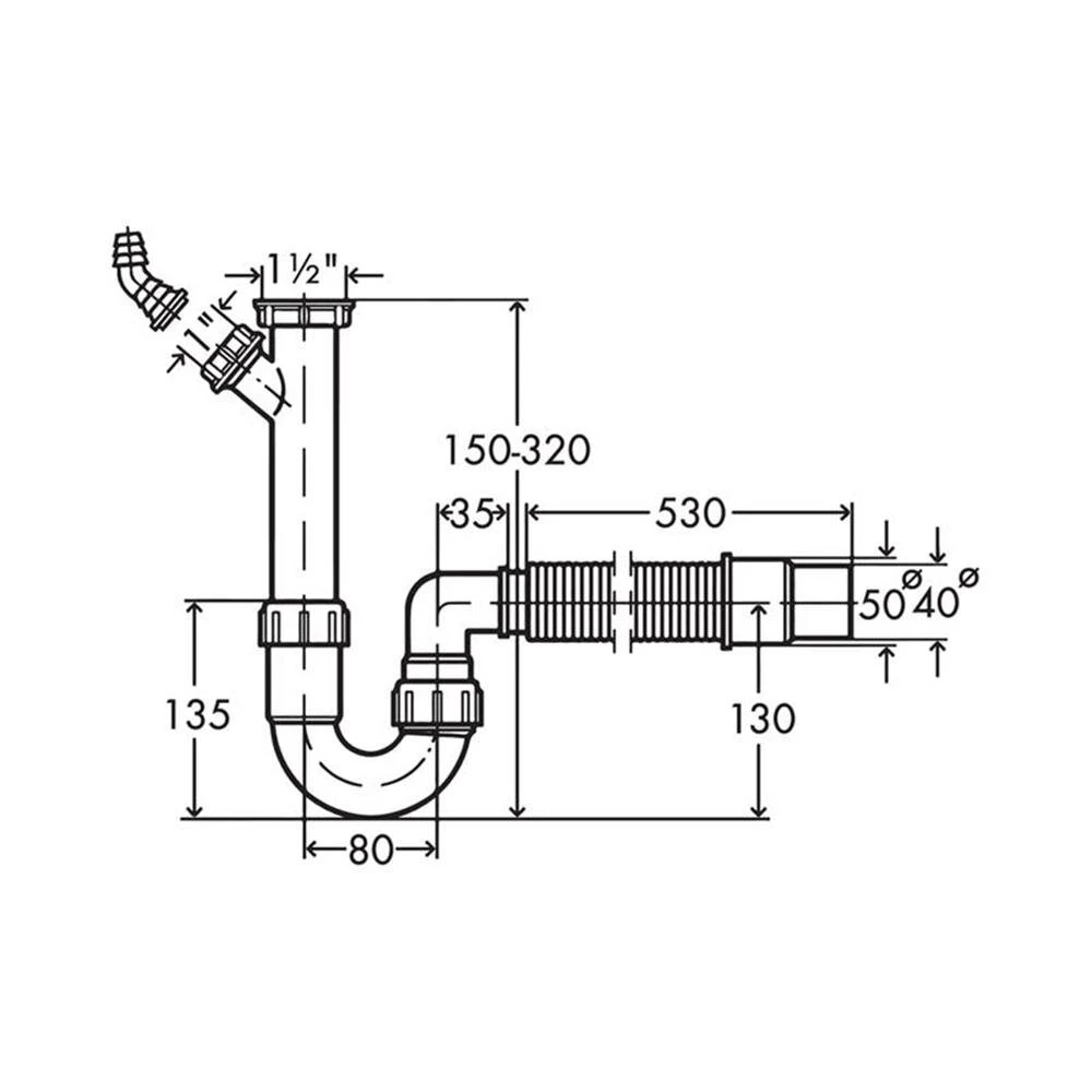Siphon / Geruchverschluss mit flexiblem Anschlussrohr 1 1/2″ x 40/50 mm