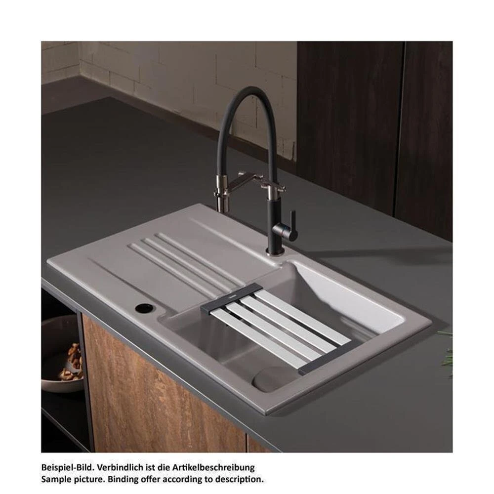 Die neue KARA 85 ist eine stilistisch und praktisch großzügige Einbauspüle mit allem Drum und Dran: Vor allem einem glatten Arbeitsbereich in der Abtropffläche. Die angeschrägten Beckenkanten nehmen die MedioMatte als zweite Funktionsebene im Becken auf. Mittig platziert entsteht dabei eine optische Fortsetzung der markanten Rillen auf der praktischen Abtropftfläche.