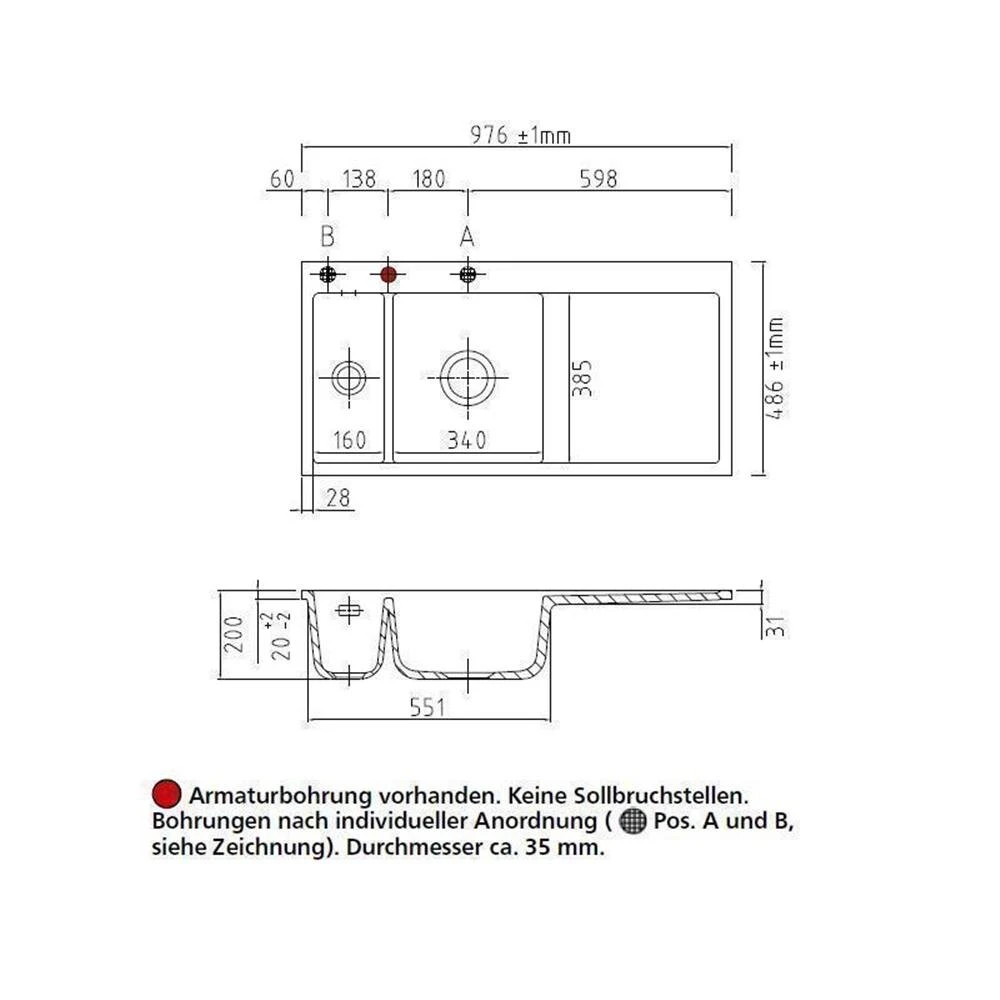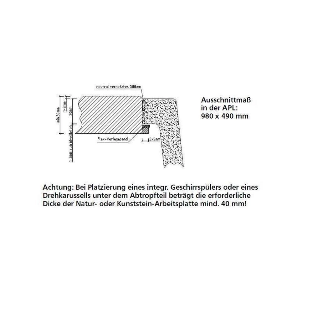 - Spülenmaß: B 976 x T 486 mm