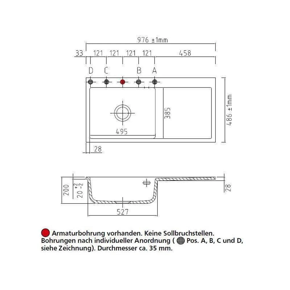 >> Flächenbündige Spüle (also flächenbündig mit der Arbeitsplatte einbaubar).