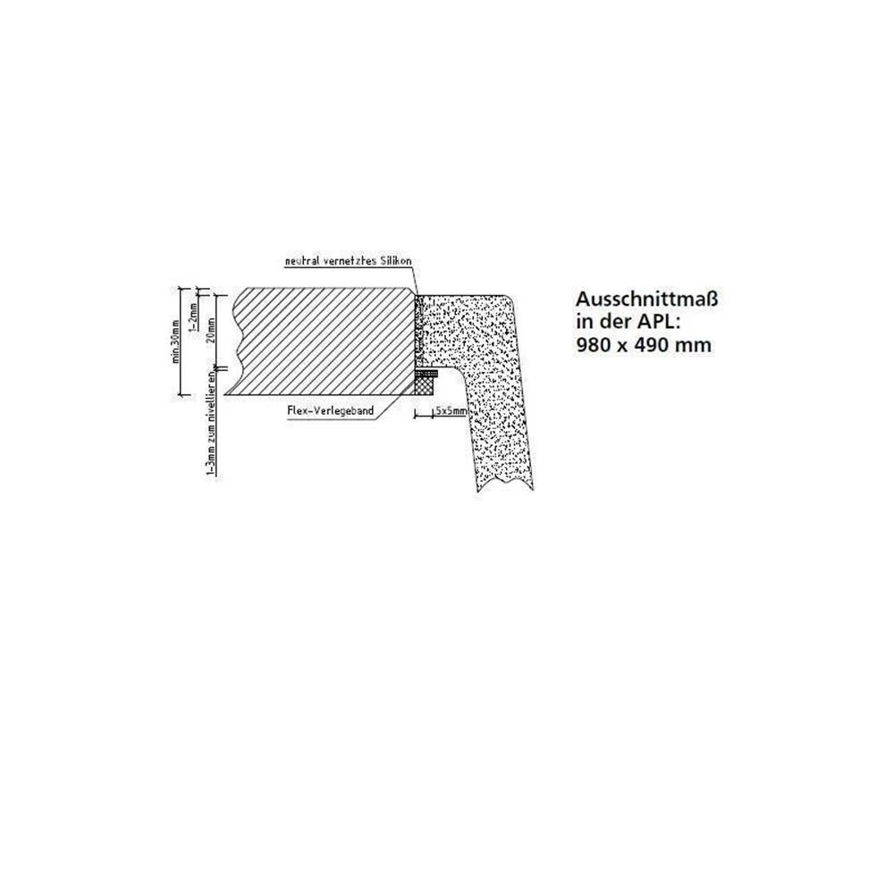 - die Arbeitsplattenstärke muss mindestens 30 mm betragen. Mit Unterkonstruktion ist der Einbau auch in dünnere Arbeitsplatten möglich