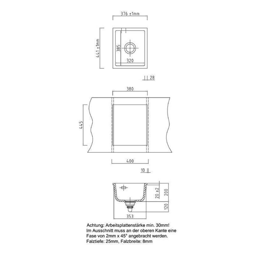 - Spülenmaß: B 376 x T 441 mm