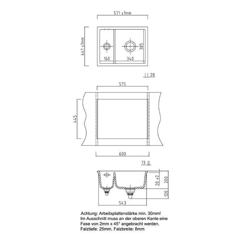 - Beckenabmessung: 340 x 385 mm / 160 x 385 x 200 mm