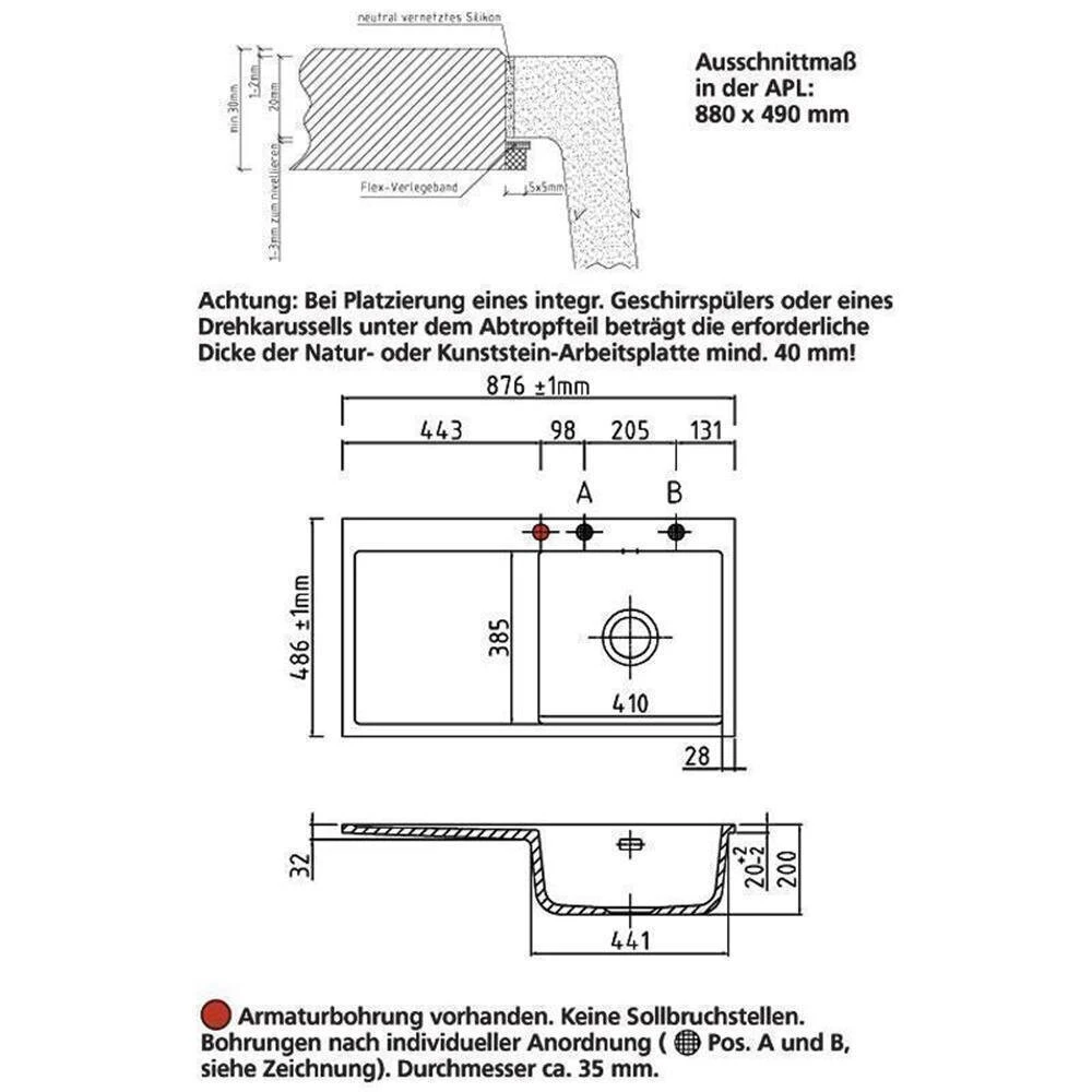>> Flächenbündige Spüle (also flächenbündig mit der Arbeitsplatte einbaubar).