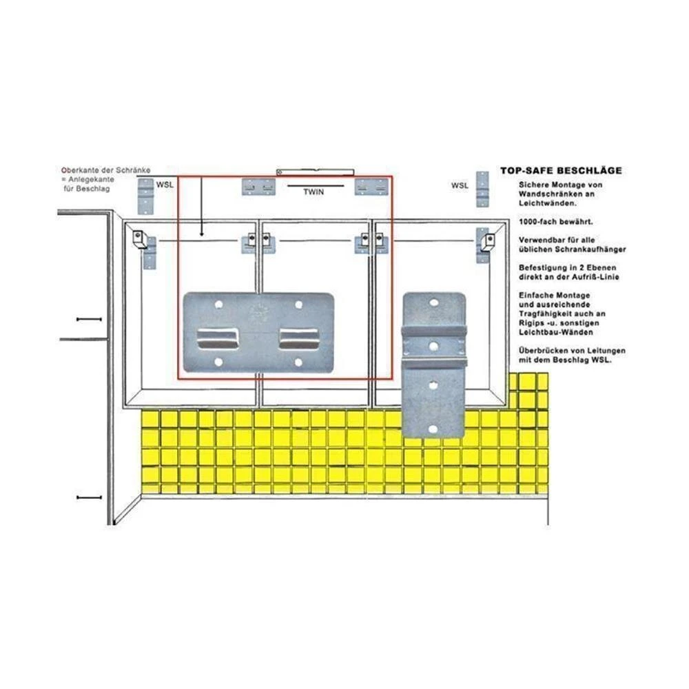 Top-Safe Twin Beschlag zur Befestigung von Oberschränken, verzinkt