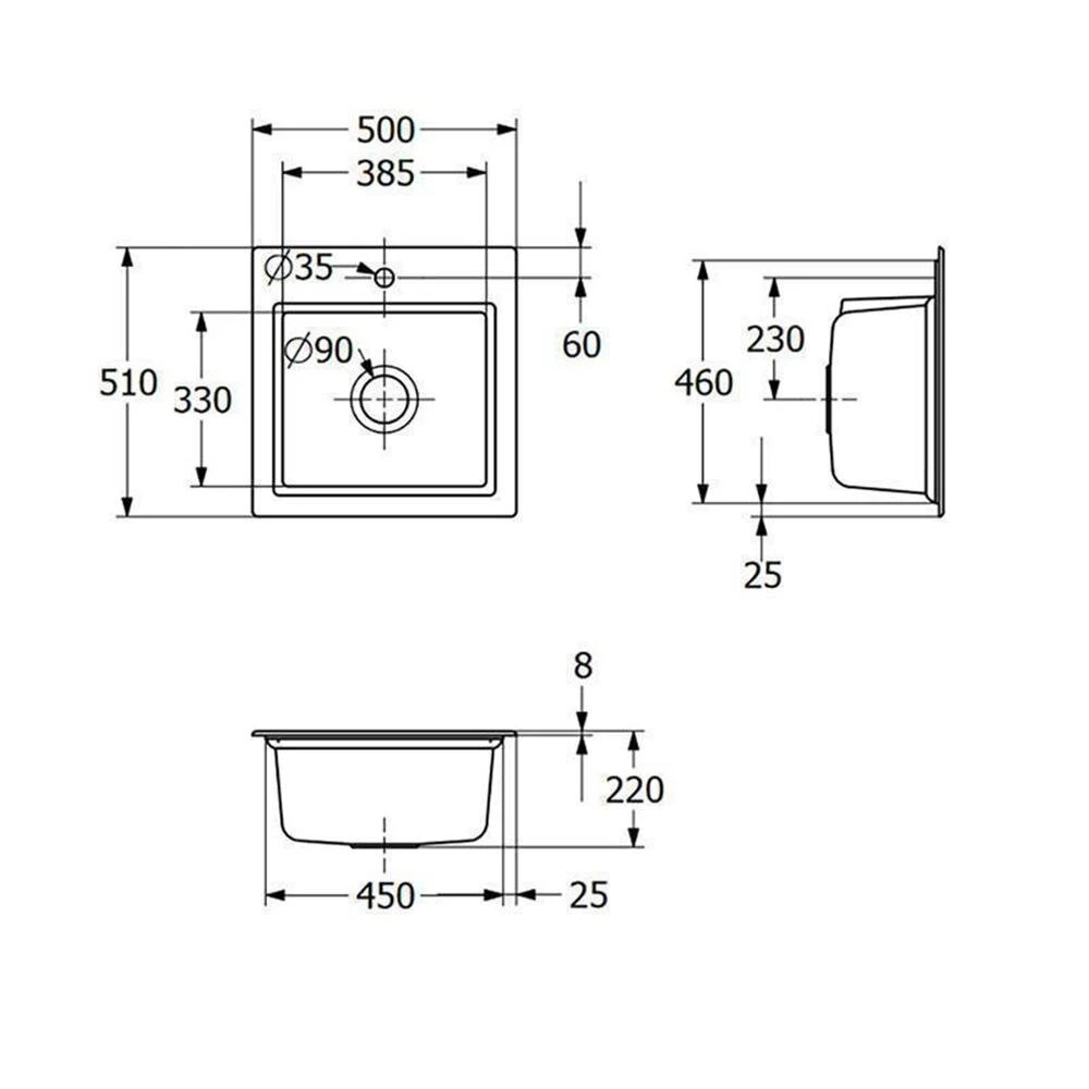 - Beckengröße: B 385 x T 330 x H 220 mm