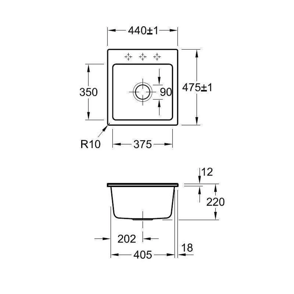 - 1 Lochbohrung für die Küchenarmatur ist grundsätzlich erforderlich