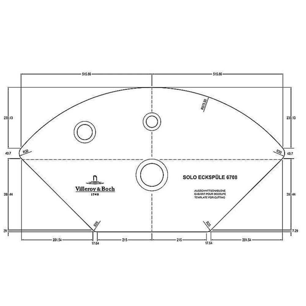 - Alle Bohrungen haben einen Durchmesser von 35 mm (passend für Küchenarmatur, Exzenter-Betätigung oder Spülmittelspender)