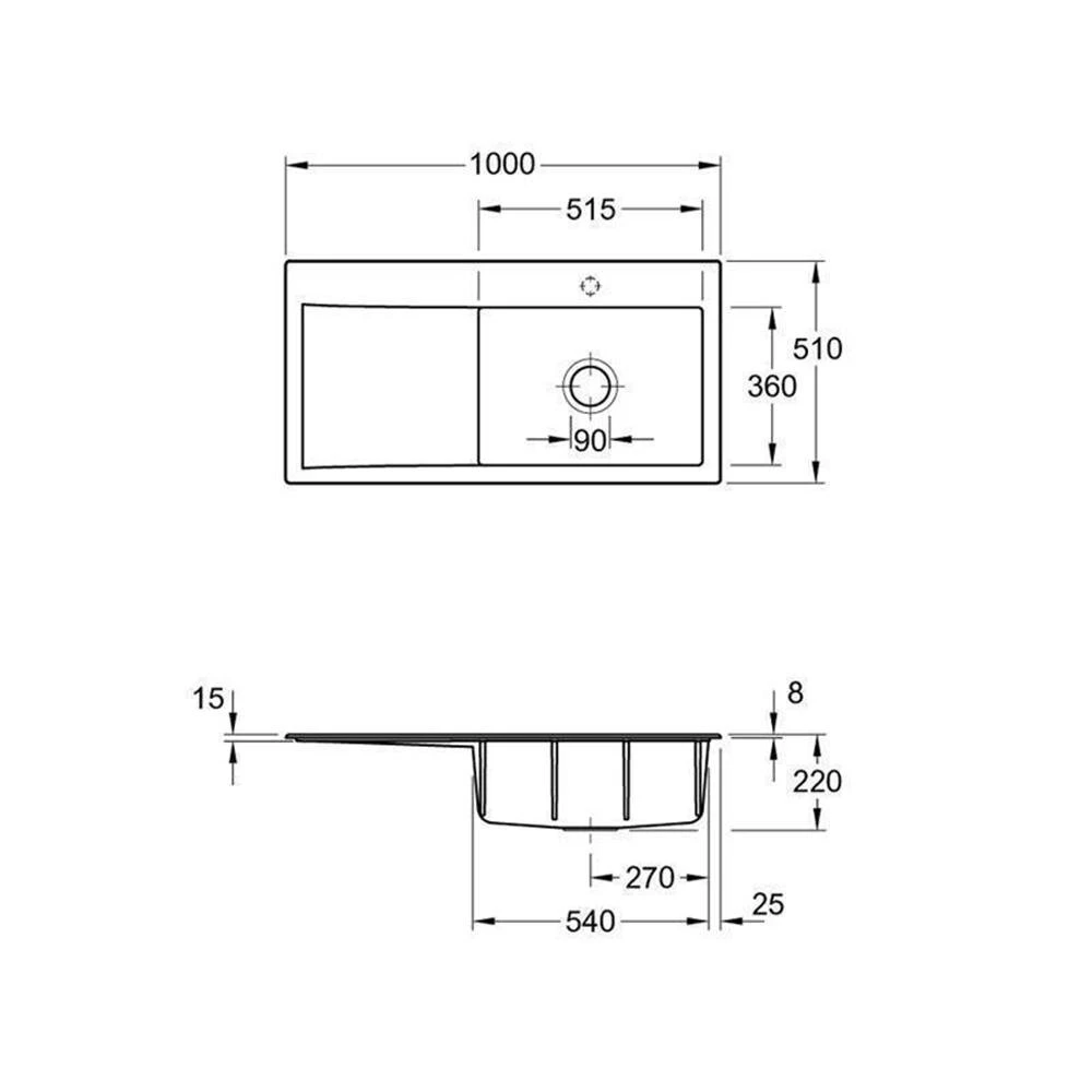 - 1 Lochbohrung für die Küchenarmatur ist grundsätzlich erforderlich