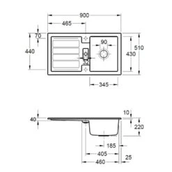 - Tiefe 480 mm x Breite 347 mm x Höhe 13 mm