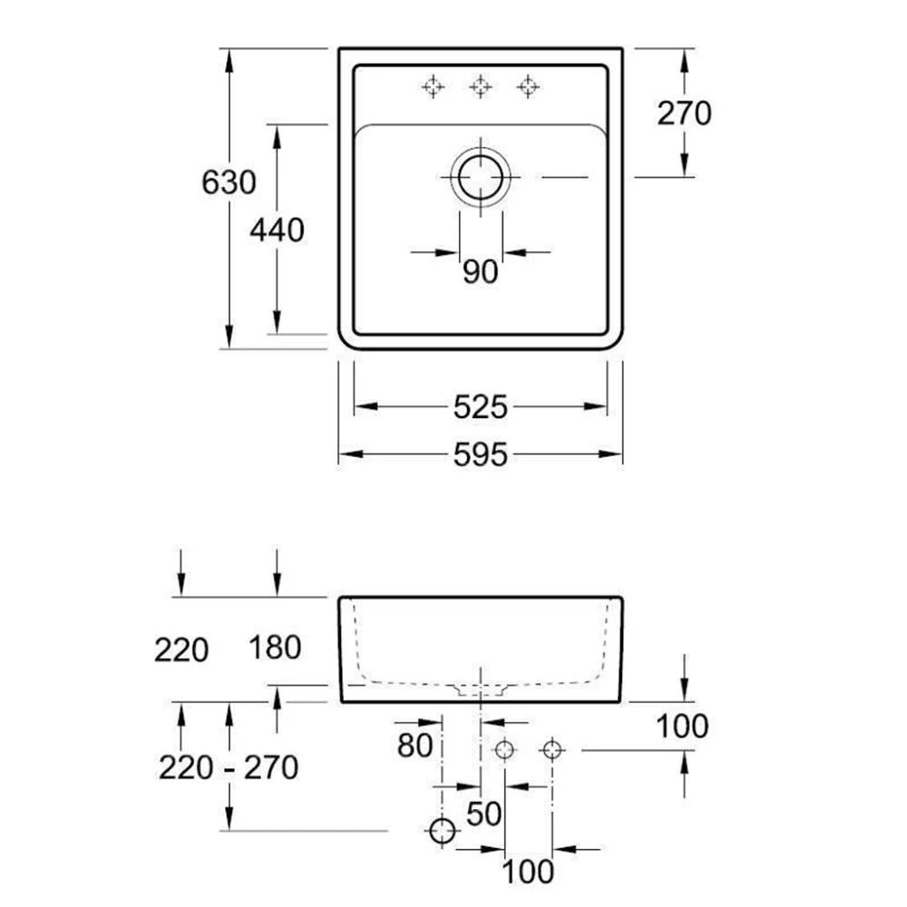 - maximal 3 Lochbohrungen möglich: für Armatur / Exzenter-Betätigung / Spülmittelspender